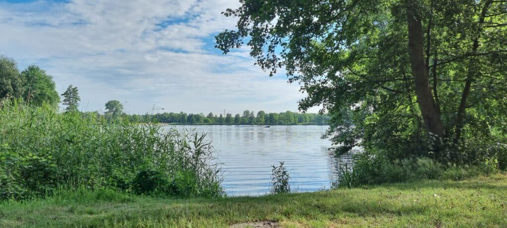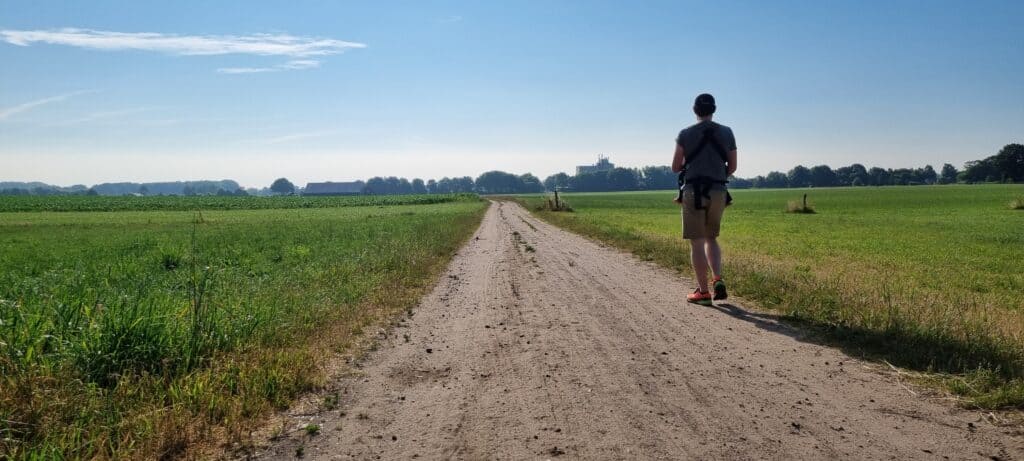 Het is een warme zaterdagochtend in juni, het zou vandaag 29 graden worden, dus we zijn vroeg op pad. Aangezien we niet langer met z’n tweeën maar nu met z’n drieën de wandeling lopen, besloten we de route van 7 kilometer te lopen. We lopen de route van punt 7 naar punt 4, dan 3,2 &1 en slaan het bovenste stuk van de route dus over.